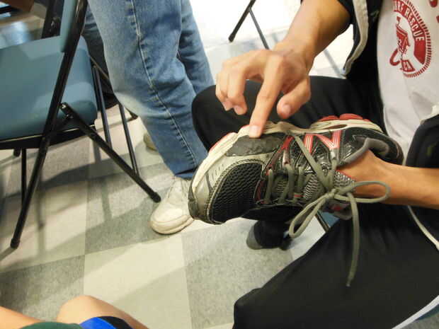 Lávese las manos. Abrir un paquete de SUGRU y apretar entre los dedos hasta que quede flexible. Estire el SUGRU y hacer un parche sobre el área dañada del zapato, que cubre el agujero y superpuestas en la parte original de la zapatilla un poco.