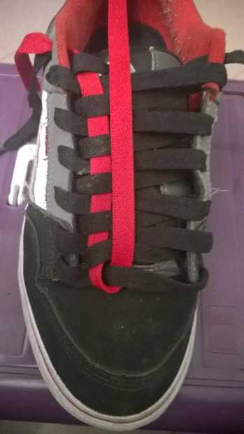 - Terminar con un columun que vuelve al final, así que pase el cordón en el último agujero en el lado opuesto de su zapato.