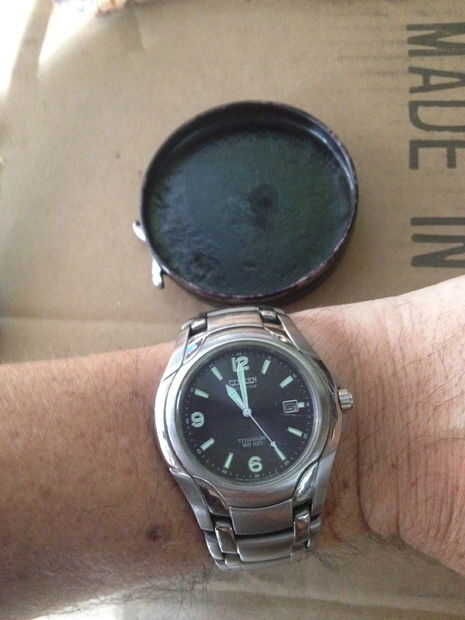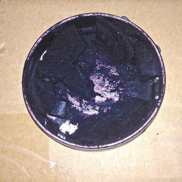 En la primera foto, verás un lugar común.  Una lata de pulimento que roto en pequeños pedazos.  Para restaurar esto, tomar la pistola de calor a una temperatura baja y mantenerla cerca de 12 pulgadas de la lata.  Caliente el esmalte suavemente hasta que liquida.
