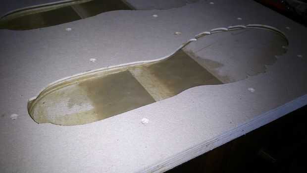 4. Lea las instrucciones de su sellador y sellar el molde donde hará contacto con la goma. El tablero de la plantilla es muy poroso e incluso múltiples capas de sellador no sellar completamente.