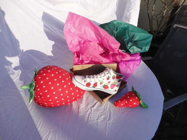Las fresas no tienen antecedentes, como se destacan en el zapato su propio.
