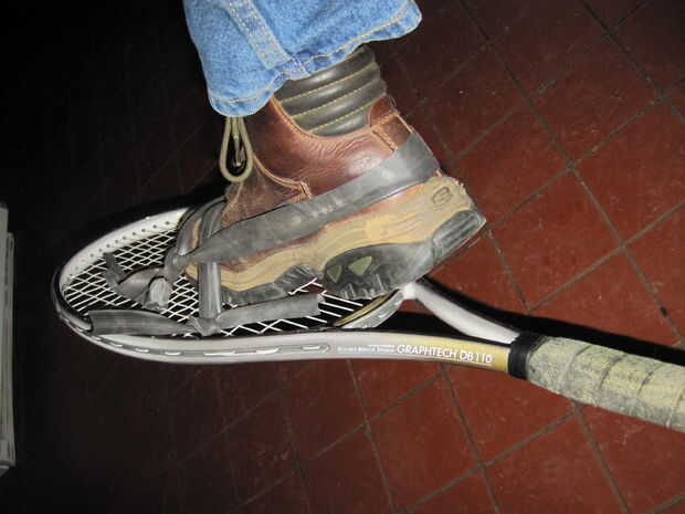 Necesito zapatos de nieve alrededor de la casa. Literalmente. Cuando hay un pie de nieve y es necesario caminar alrededor de la casa de rake de la nieve de los aleros, puede ser pesado nieve todo alrededor de la casa. El año pasado me agarró un par de raquetas de tenis y utiliza algunos alambres de cobre casa vieja para mantenerlos. No funcionó demasiado bien y mantiene caída de. No lo que quieres, cuando vas de pie en la cima de un montículo de nieve desempaquetado.