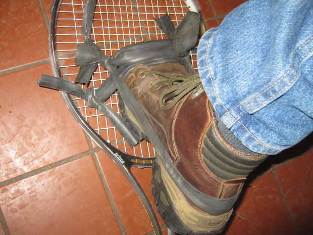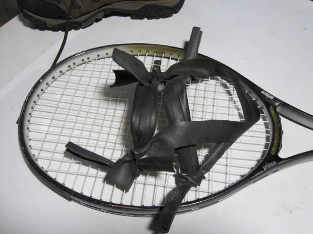 me decidí a hacer esto en un viaje largo del año a Francia, y haber dejado mi guitarra en Texas, necesitaba algo para jugar. Así que cuando vi una vieja raqueta de tenis sentado en un montón de basura, se me ocurrió esta idea.Paso 1: materiales Para