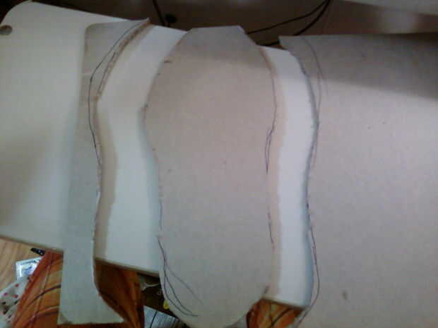 Corte una sección de la hoja que será capaz de cubrir completamente ambos lados de los pies de cartón. Asegúrese de que dejar uno de los lados largos intacto, que lo usará para las tiras de tela más adelante.