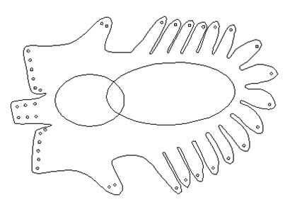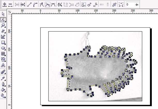 Luego poner la imagen en el fondo y dibujar el contorno con el ratón; Sólo puso un punto en cada esquina y luego alisar las líneas (hay una opción para los objetos línea; lo siento que no puedo dar los términos técnicos correctos, ya que estoy usando la versión alemana del software). La segunda imagen muestra una captura de pantalla del patrón del dibujo con los símbolos de la opción de línea.