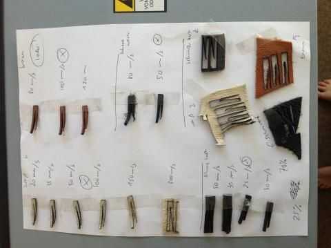 1., estábamos bastante seguros que debería funcionar, ya que el cuero es un material natural, mucha gente utiliza el soldador para hacer diseños en cuero. Sin embargo, puesto que de alguna manera fue coloreado más cuero, tuvimos para asegurarse que el color no contiene cloro, que cuando quemadas por el láser crea un gas que destruye el mecanismo del láser. Por lo tanto, tomamos una pequeña muestra de cada cuero y había quemado con un mechero. No había ninguna luz verde en la llama pequeña, así que creo que había no hay cloro en la piel.