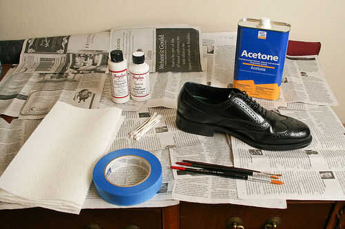 Afortunadamente, zapatos de cuero de la pintura es fácil y puede tener excelentes resultados. Existen comunidades en línea de calzado-pintores (naturalmente el internet tiene una comunidad para todo), pero la mayoría de las personas nunca ha visto un dulce par de patadas personalizados.