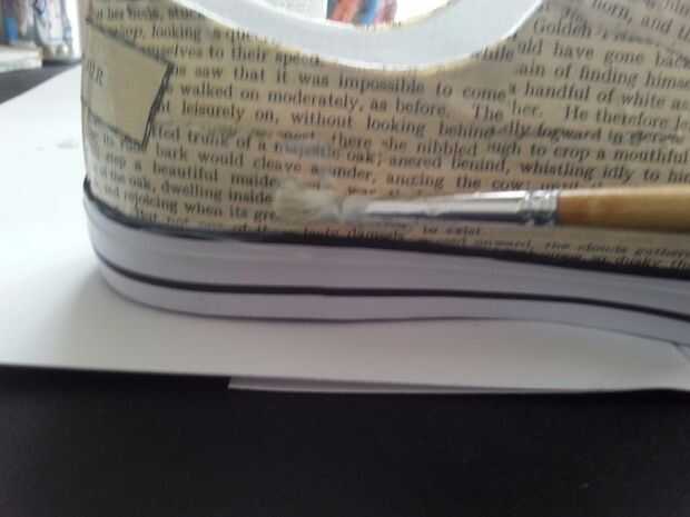 Para sellarlo completamente, decidí pegar los bordes de los zapatos así, así cualquier papel pegado irregularmente sobre los lados atascado hacia abajo. Una gruesa capa alrededor del borde de la zapata del cepillo y limpie cualquier exceso que va sobre los lados. La capa más gruesa tardará más en secar así que ten cuidado si mover algún sitio más.