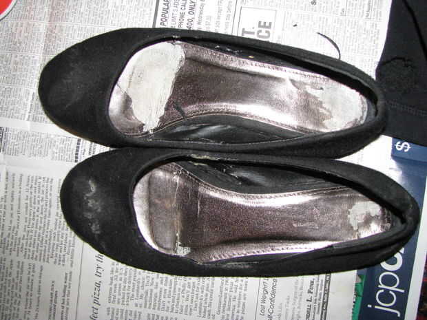 me paso a elegir zapatos con arcos sobre ellas y este arte funciona mejor con un zapato llano así que tuve que cortar los lazos. Dependiendo de la zapatilla puede cinta fuera de la planta del pie (para cura sería prudente en cinta fuera del área de la planta del pie entre la bola del pie y la sanación, donde se expone la suela de todos).