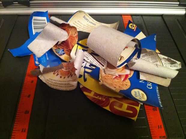 Luego corte todas las piezas de etiquetas/impresas de la cartulina, excepto la única pieza que quieras que uno más grueso y rugoso. Empezar a separar con una uña del dedo y despéguela todo. Esto hace que el cartón un poco más flexible.