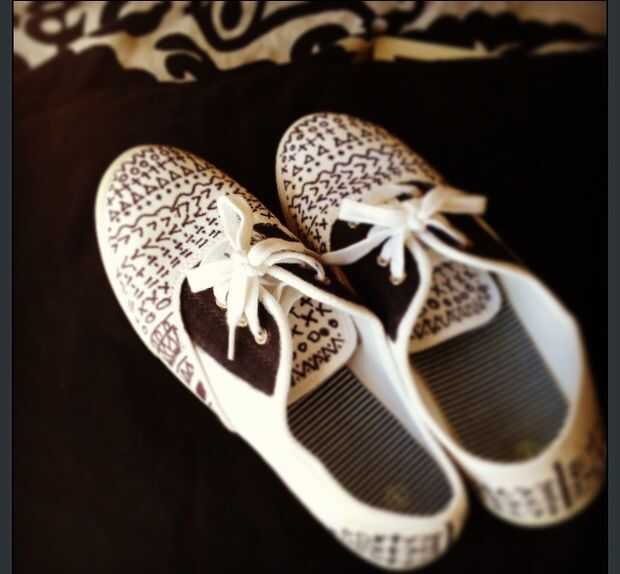 Si quieres darles un poco más prueba agregando más color. Si desea que todos los impresión de tribal creo que quedará bien también! Y TADA HERMOSA ORIGINAL TRIBAL GRABADO ZAPATOS! : D