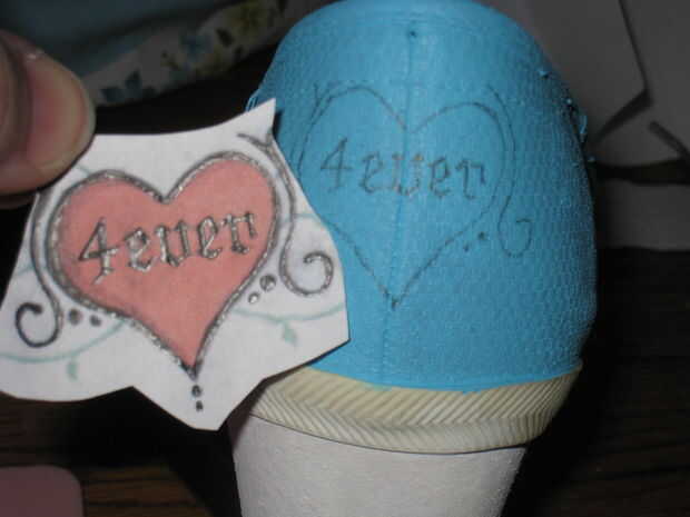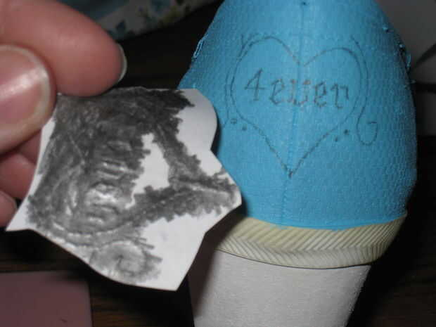 7. continúe para colorear la parte posterior de la gráfica a continuación, trazar los diseños hasta que su diseño se han transferido a sus zapatos.