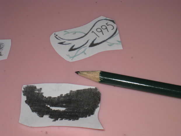 4. Utilice un lápiz del #2 a color sobre las líneas en la parte posterior de cada diseño impreso.