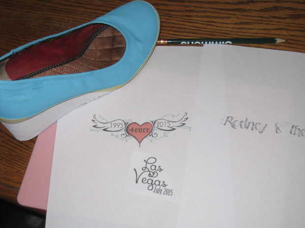 6. traza el diseño con el lápiz. Use suficiente presión para transferir el diseño a la zapatilla sin presionar un agujero a través del papel.
