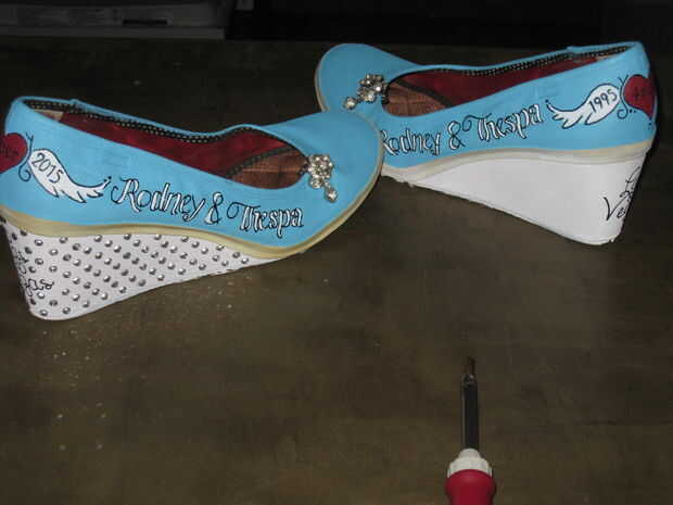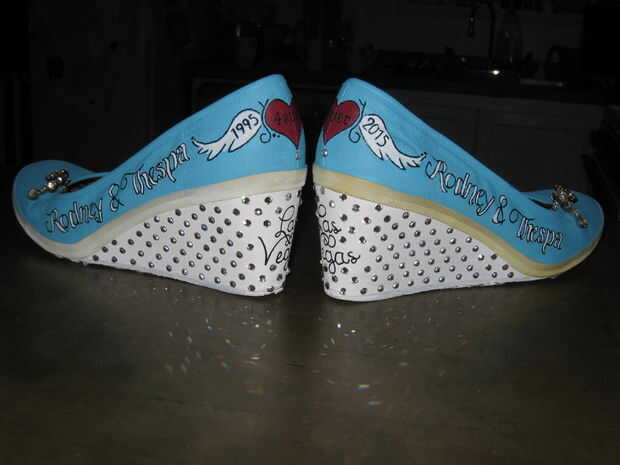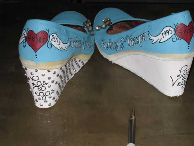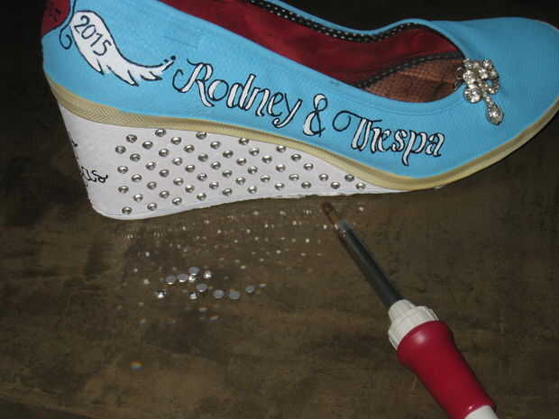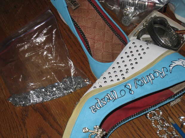 1. usando rhinestones calientes del arreglo y caliente fijar el tubo, se adhieren a los cristales a sus zapatos en el patrón deseado. Elegí para escalonar los cristales, en parte para utilizar menos cristales, y en parte porque me gustan los lunares.