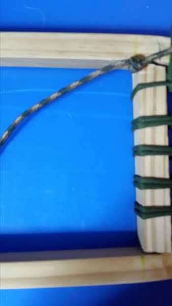 Comienzo atando un nudo del resbalón junto a la primera de ellas (se hace en la punta) y comienzo después de los cuadros y atar los nudos de día
