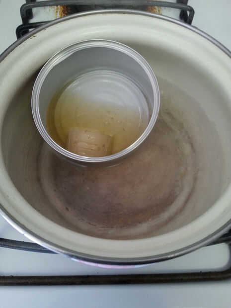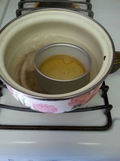 Coloque la cera de abejas en la lata (yo usé una lata de comida de gato limpia) y luego coloque la lata en el agua.