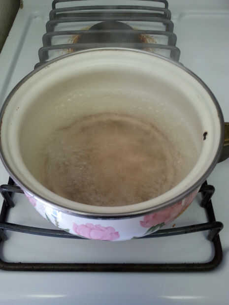 Poner agua a hervir en la olla pequeña, luego fije el calor a bajo.