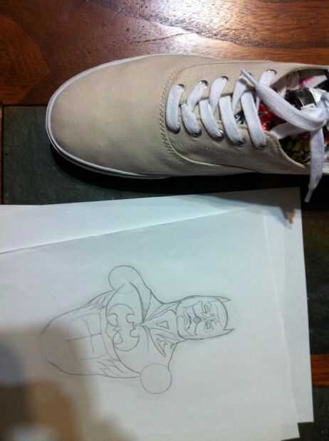 Ahora aquí es donde sus salidas creativas realmente ven prácticos. Usted puede crear su propia obra de arte o si usted está tan inclinado o simplemente imprime una imagen interesante y empezar cubriendo la parte posterior de dicha imagen en lápiz grafito/plomo y seguimiento (con el lado sombreado abajo) la imagen en el zapato de lona.