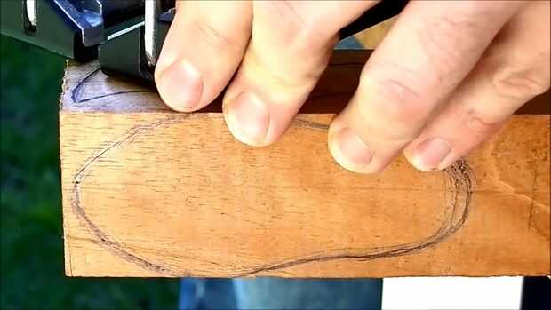 Dibujar la forma del zapato en una pieza de madera. por lo menos 12 pulgadas de largo.