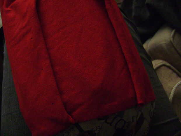 Cortar una tira de la camiseta que es tiempo suficiente para envolver alrededor del exterior de la zapatilla y dos veces tan ancho como la altura deseada para su zapato terminado.