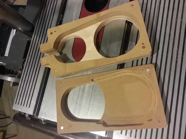 La capa inferior tiene una abertura para el eje de un lado y del otro lado es ahuecado como la fuerza del material permite reducir al mínimo la caída de presión. Estaba usando MDF así que salí unos 0,2" del material. Redondea los bordes afilados para mejor flujo de aire había perforado los agujeros de 1/4 imanes y había pegado en lugar-asegúrese de que usted no accidentalmente pegamento uno al revés!
