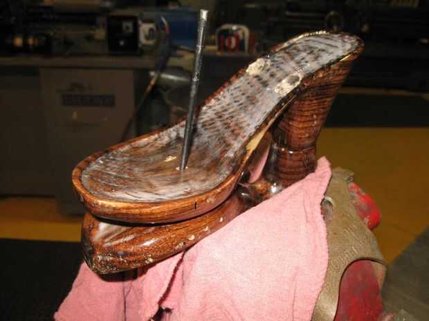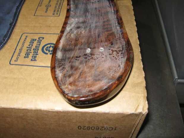 El cuero para la suela había sido deforme durante el proceso de costura. Me pareció fácil de devolver la forma con un hierro y un ligero velo de agua.
