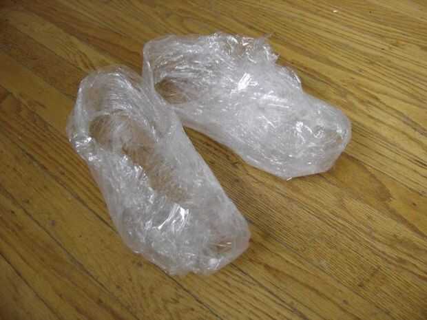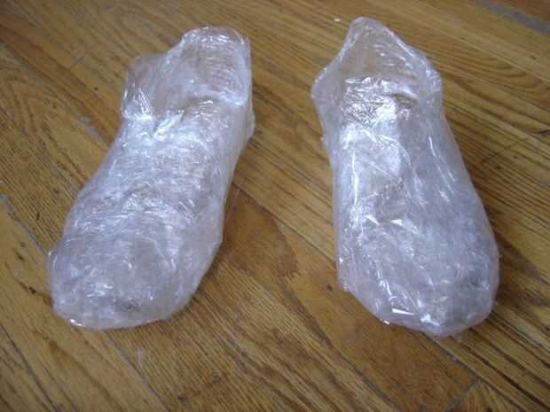 Tome algunos más cinta de embalaje y sello de las tapas de los zapatos otra vez.
