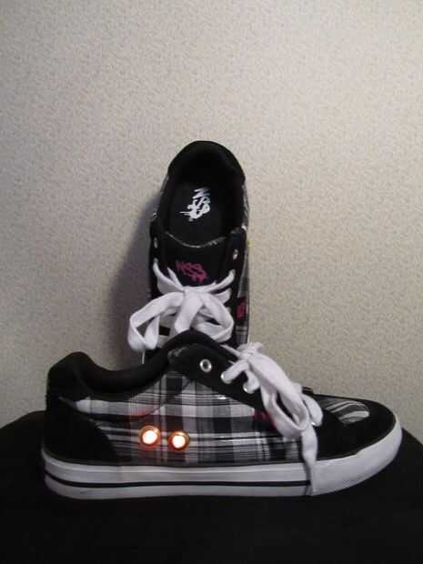 Si iba a hacer otro par, haría algunas cosas diferentemente. En primer lugar, intentaría encontrar un zapato de donantes con un mejor sensor de movimiento porque a veces son un poco impredecibles que usé. También elegiría un zapato adulto que tenía una suela más gruesa porque esta planta era un poco demasiado delgada para adaptarse a la electrónica. Por último, creo que elegiría un zapato más como una zapatilla de skate con más acolchado todo porque me daría más espacio para ocultar la electrónica.