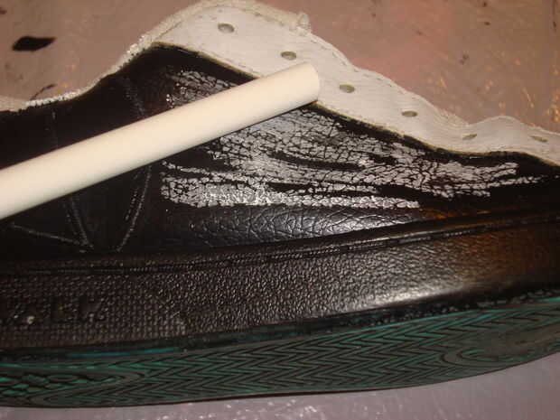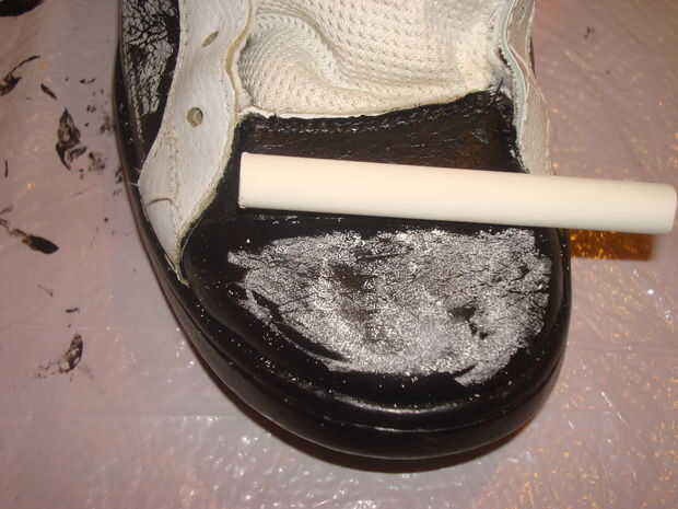 Estos son mi versión de los zapatos del jabón, que puede moler on rails, repisas y en cualquier otro lugar un skater o inliner agresivo puede. Utilizan un par de zapatos, un material deslizante (algún tipo de plástico es probablemente mejor) y pegame