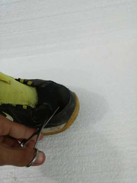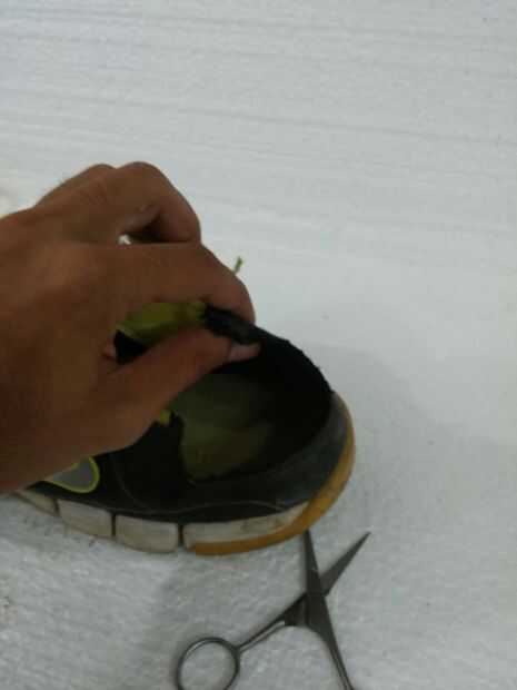 Así que reducir estas secciones de ambos zapatos y además cortar las almohadillas uper de zapato en buen estado.