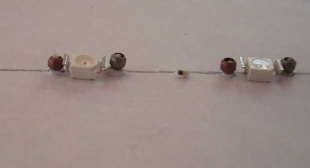 Si utilizas regular LED prepararlas del mismo modo que elabora la resistencia girando los extremos alrededor de los alicates de nariz de aguja