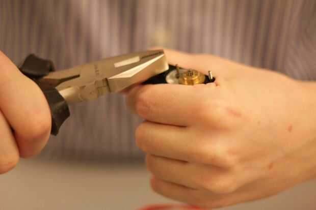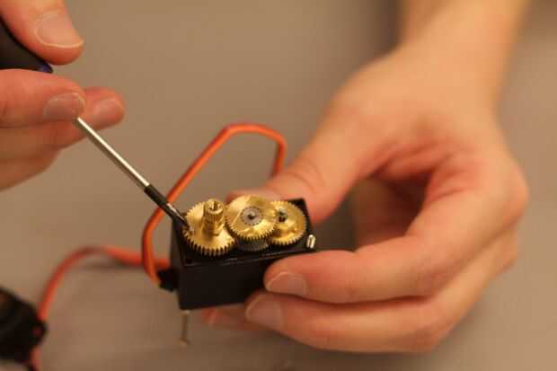 Abra el lado del servo, tire de la corona con el limitador mecánico y utilizar una Dremel o un archivo para quitar el trocito de plástico y metal, para que la corona podía girar libremente 360 + grados.