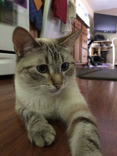 La parte delantera y la parte superior del pie de un gato no pueden tomar tanto desgaste como las almohadillas de la pata. Así que tuvimos que encontrar una manera de impedir que este niño frotando sus nudillos crudo. Aquí está la solución que está trabajando para Mikey.