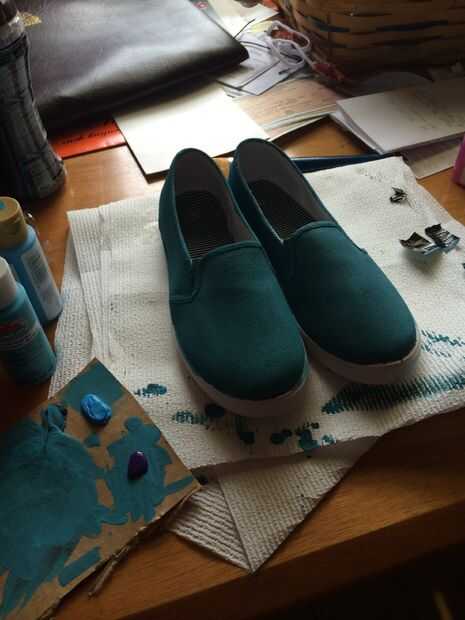 Últimamente he embarcado en varios proyectos de comic/mod podge/vinilo. El primero a completar es el proyecto de zapatos. Este fin de semana mi hija y yo fui de Nana y había completado en un día. Mi hija terminó su Hightops en pocas horas. Pasé más t