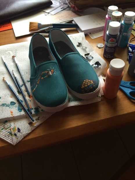Últimamente he embarcado en varios proyectos de comic/mod podge/vinilo. El primero a completar es el proyecto de zapatos. Este fin de semana mi hija y yo fui de Nana y había completado en un día. Mi hija terminó su Hightops en pocas horas. Pasé más t