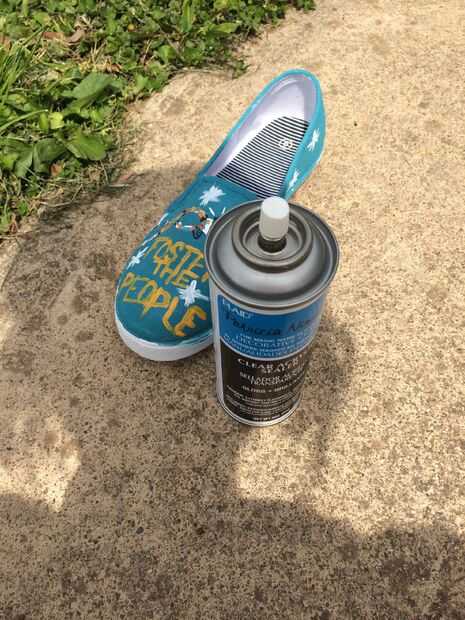 Últimamente he embarcado en varios proyectos de comic/mod podge/vinilo. El primero a completar es el proyecto de zapatos. Este fin de semana mi hija y yo fui de Nana y había completado en un día. Mi hija terminó su Hightops en pocas horas. Pasé más t