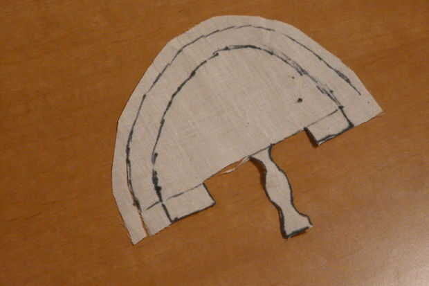 Añadir dos lengüetas para el lado derecho de la plantilla de los pies como un margen de costura. Las fichas deben ser 5/8 pulgadas ancho y aproximadamente 1/3 del ancho de la plantilla entera del dedo del pie (ver foto).