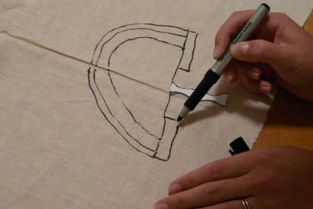 La planta del pie de lado y traza dos arcos más grandes alrededor de la primera. El segundo arco debe ser más grande que la original por 3/4 del espesor de la suela. Esta es la parte que se superpondrá a la planta del pie y se viró hacia abajo. El tercer arco debe ser 1/4 de pulgada más ancho que el primero. En esta sección será doblada debajo para crear un dobladillo.