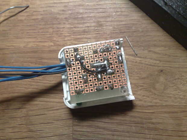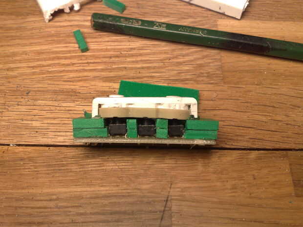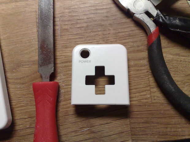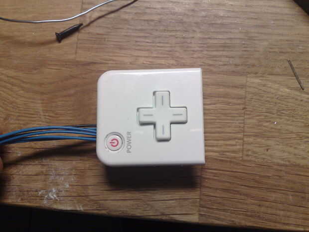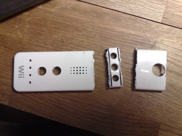 Mi decisión fue utilizar el control cruzado en el lado izquierdo, donde estaba el interruptor de selección de fuego, la +, - y botones de inicio deben sentarse encima de la wii y el botón de conexión debe ir dentro de la bahía de mag. Porque el botón B se conectarán con el antiguo botón de disparo no hay necesidad para construir cosas para él.