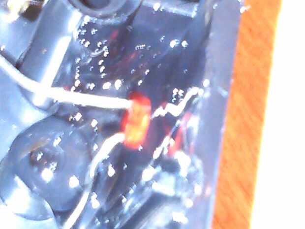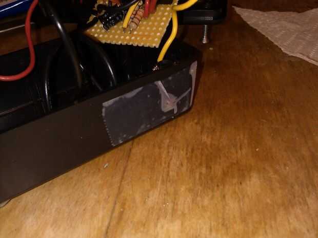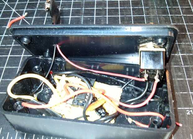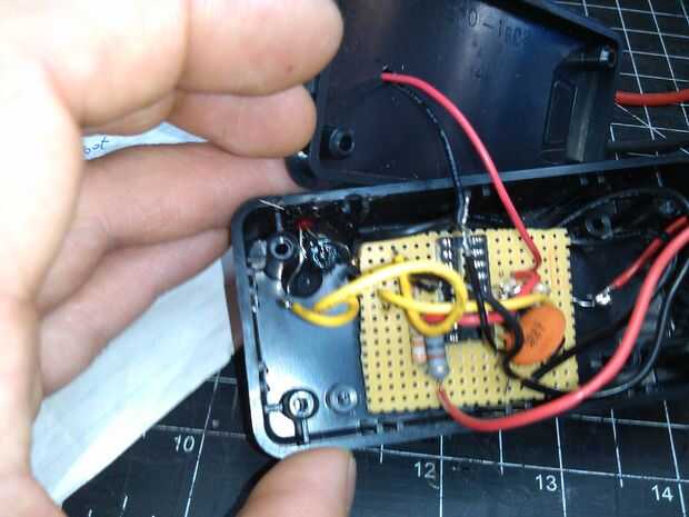 Se puede ver un cable rojo y negro que entra por el agujero de la tapa. El cable negro va soldado al pin 5 y el cable rojo va soldado a un interruptor que todavía tengo que perforar un agujero para. El interruptor será un interruptor de palanca que se monta en la tapa. Fotos del interruptor deben seguir.