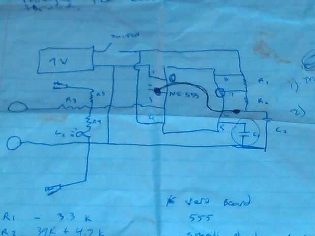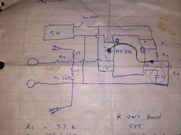 He utilizado.5 Watt, resistores de tolerancia del 10 por ciento, los círculos de izquierda del esquema representan centavos de cobre. Había soldado algunos restos de alambre de resistencia en centavos. Yo Coloque la plancha de soldadura 1000 grados Fahrenheit y la punta en el centavo aproximadamente veinte segundos hasta que la perra estaba lo suficientemente caliente como para derretir la soldadura que estaba tocando el if de un cuarto de penique una pulgada lejos de la punta de hierro de soldadura que también estaba tocando el centavo.