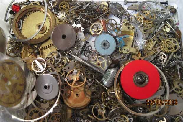 Este recurso principal requerida, como se muestra en el cuadro 2, es un montón de piezas del reloj.  Hubo un tiempo, hace unos años usted podría han robaban este desecho por la libra, con poco o ningún costo.  Esos días son más, y si desea que este material ahora tienes que pagar mucho dinero de una fuente como eBay.