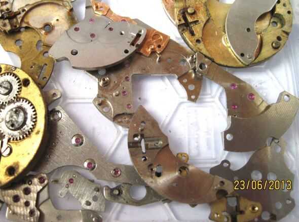 Cuando llego a mi partida, voy a través de él con cuidado, sorteando y poniendo a un lado estas placas, Foto 3.  Estas placas están disponibles en todos los relojes, pero obviamente cuanto más grande el reloj, el más grande representan las placas planas.  Lo bonito de estas placas es la amplia gama de formas que tienen. Forman la base perfecta para mis creaciones.