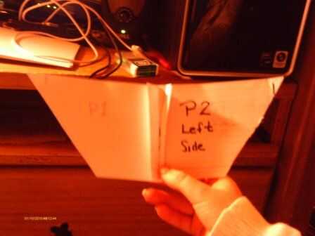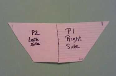 1. con las dos partes (P1 y P2) al lado del otro, deslice el lado izquierdo (P2), sobre la derecha (P1) para que el 2" corte sección está detrás de la otra pieza. Tendrá la forma de un trapecio.