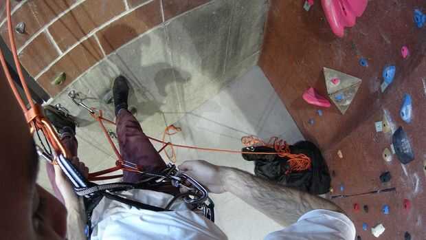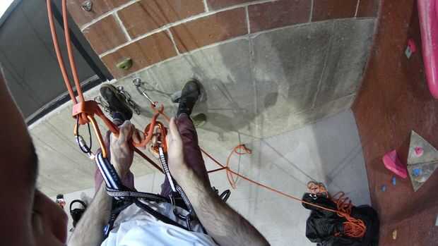 a. esto no dejando lentamente el cable se deslice por tu mano de freno (uno por debajo del descensor).