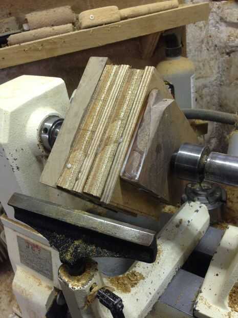 Una vez que el pegamento se había curado... (Pegué hasta antes del trabajo y cuando llegué a casa detrás había curado el pegamento) Pongo el espacio en blanco entre los centros tratando de asegurar la capa fueron lo más vertical posible y girar a la forma áspera, así como girar una espiga donde se puede celebrar en el mandril de la lámpara.