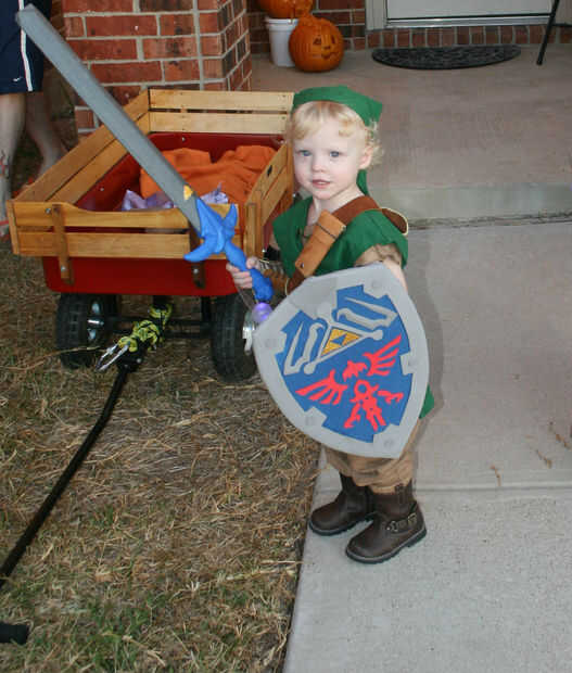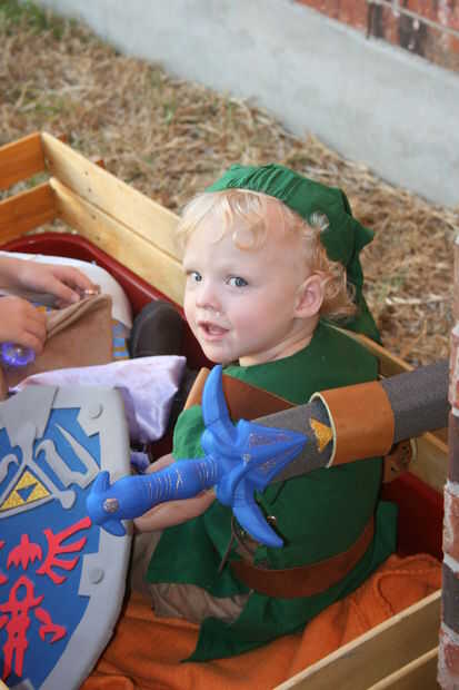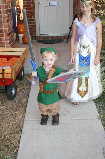A un lado los zapatos y la espada, todo para estos trajes fue hecho a mano.  Todo el proyecto tomó alrededor de un mes para completar, vestido de Zelda tomando más tiempo como nunca había hecho un vestido antes.  Yo no uso patrones y una máquina de coser rota hizo difícil así.