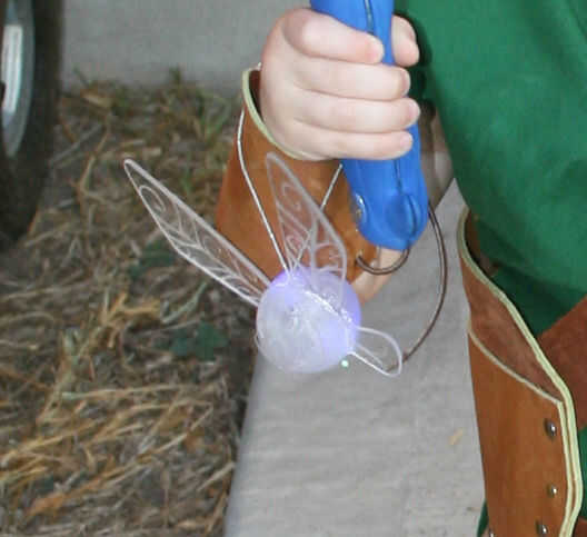 El hada estaba hecho de plexiglás, un ornamento de la Navidad, 3 LED azul y una batería.
