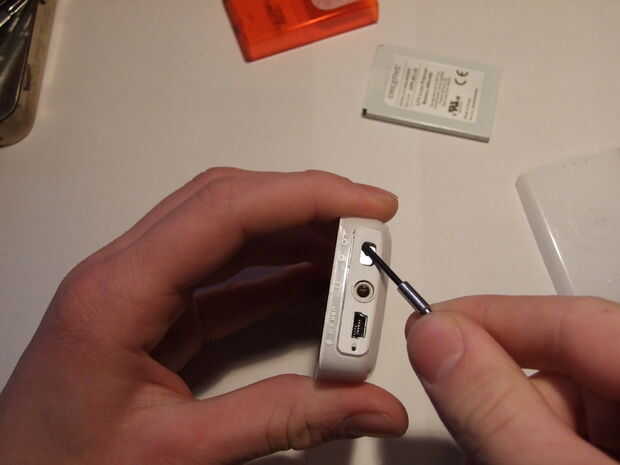 2) tome su destornillador de ranura y empuje en el lado opuesto al interruptor de bloqueo hold (respecto la foto)